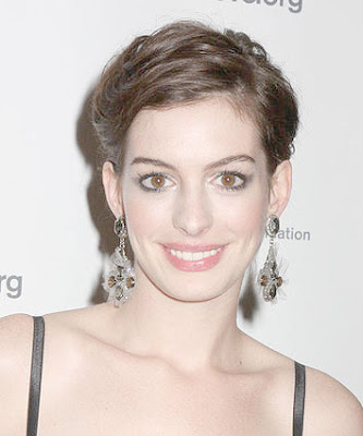 Anne Hathaway in the short hair style on the red carpet of the Christopher and Dana Reeve Foundation which is the magical evening at the Marriott Marquis dated 12 November 2007.